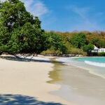 Die Naturkulisse ist wirklich märchenhaft: Puderweicher Sand in zartem Goldton, glasklares Wasser, das zwischen Türkis und Azur schimmert, und glattgeschliffene Felsen, die am Ufer wie kunstvoll arrangierte Skulpturen wirken.